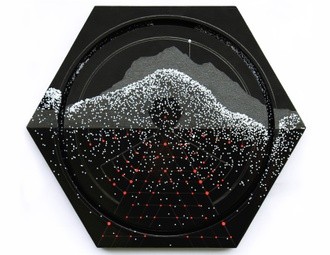 Artist Statement: MOUNTAINS & MOONS | As a child I often had this certain type of dream/nightmare of driving down an outrageously long, straight, and narrow road always toward distant, looming mountains. While on every side earth would be collapsing and quaking, or surging waters flooding, massive fires raging, and sometimes, when I was lucky, morning would come, brilliant and full of color.