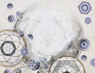Artist Statement: THE ONCE AND FUTURE | In which I am playing with time (again). A wild and useful collapsing of past-present-future in an ongoing search for glimpses of eternity. In this series I find I'm trying to do something I've always done, always wanted to do, and am somehow doing for the first time--a first step made onto this path which shines off into that mirage shimmering future. Folk tale themes, forms, and imagery appear alongside geometry, patterns, and symmetry.