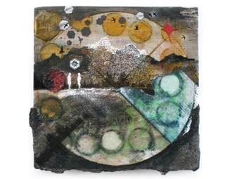 Artist Statement: COMBUSTIBLE FAIRY TALES | Fairy tales are our collective recurring dreams/nightmares. In this series I'm rolling up images, themes, symbols, colors, numbers, all the stuff that comes up in fairy tales again and again--nature, young death, curses, silver cups, silver pools, clouded waters, pins, poison, beauty, monsters, the rule of three, tasks, challenges, seven mountain peaks . . . Bunched together into a ball of abstraction with super massive black hole gravity which collapses and explodes reborn, reforged, changed.
