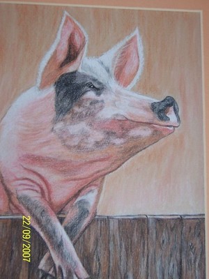 Pig looking over fence