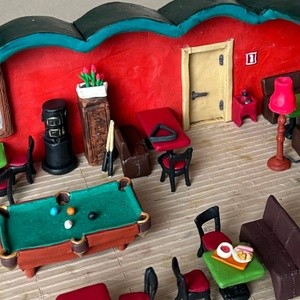Canteen at the FABRIKA, plasticine, cardboard, 25x17,5x10 cm