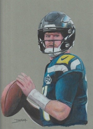 Daniel Carlson - KICK OFF - Graphite pencil drawing by Dean Huck