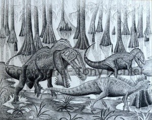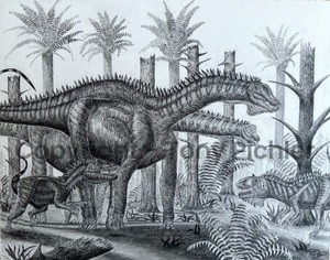 Recreating scientifically accurate dinosaurs in their natural habitat using charcoal, carbon, & graphite pencil on illustration board.