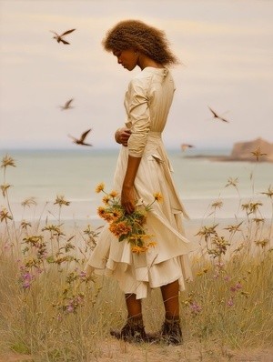 My art weaves together elements of the spiritual, nostalgia, and the natural world. I aim to create pieces that embody flow, beauty, and cohesion, allowing each work to carry its own sense of harmony. Often, my creations reveal themselves as I move through the process, guided more by the message each piece wishes to share than by rigid intention.