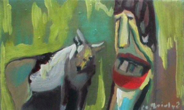 goat and sculpture