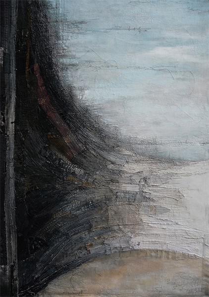 Made in mixed media with textile, paint, machine embroidery, gesso and paper
