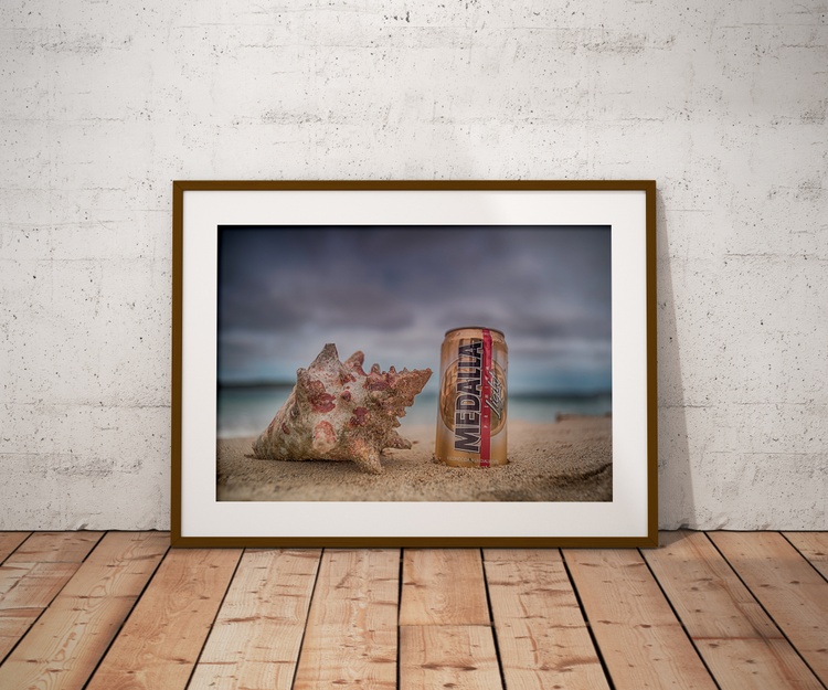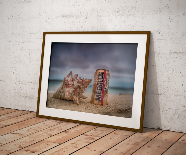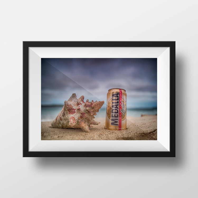 Conch shell and a Medalla beer. Puerto Rico beach day summarized in one photo.