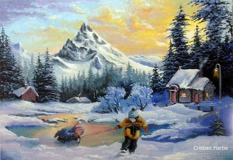 Amurg pe strada Varnav - Botosani 50 x 70 cm / ulei pe panza Pictura realizata de Cristian Hartie