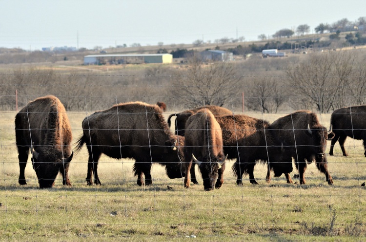 Part of the herd at Buffalo Valley Ranch where there is a versatile event center, cabins and RV park and pond for fishing. Denton, Texas