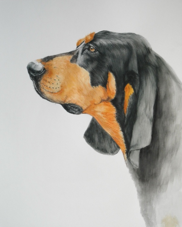 The Black and Tan Coonhound is American born and bred. He was developed in the southern United States in the late 18th century from Foxhounds and probably an infusion of Bloodhound, from whom he gets his coloring, long ears and large-boned body, not to mention his famous cold nose: the ability to find and follow an old trail with barely any scent left to it. Black and Tans hunt raccoons, of course, and possums, but they’re also happy to trail bigger game such as deer, mountain lions and bears. They’re not especially fast on the trail, but they are unwavering. Once they tree their quarry, they bark to alert the hunter. The handsome Black and Tan is happy-go-lucky and adaptable. Calm by nature, he has an outgoing, friendly temperament. He’s a good friend to children, but if you have toddlers, consider adopting an adult Black and Tan, who will be less rambunctious than a puppy. Black and Tans get along well with other animals, cats included, especially if they’re brought up with them. Their exercise needs are moderate. Plan on giving a Black and Tan at least a half hour walk once or twice daily, plus several shorter outings throughout the day. Remember that a tired Black and Tan is a good Black and Tan (vetstreet.com).