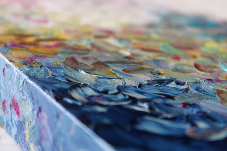Original oil finger painting on stretched canvas. 80x60cm. Unique artwork. Painted on quality stretched canvas with high quality oil paints. The sides of the picture are also painted. Ready to hang. Signed on the frame.