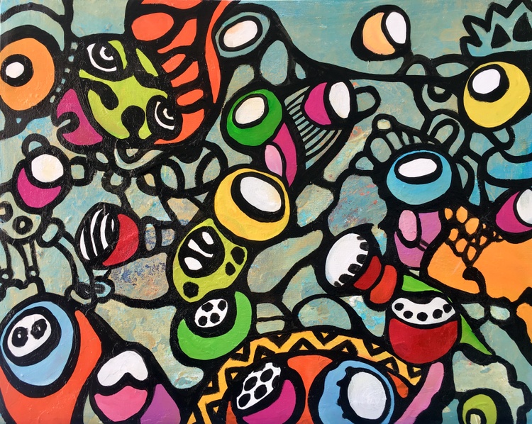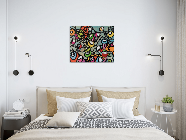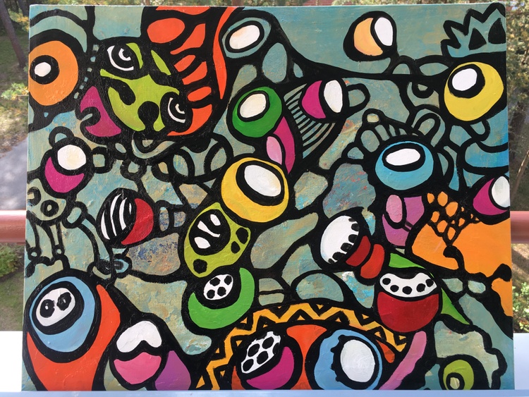 This work is made on an artistic flat canvas panel. Doodles, rounded shapes, and colors, a positive state of mind inspired me to create it. I ship it in a box. All you will have to do is to frame it. You can also leave it unframed and put it on some surfaces. It looks great. I also have it as a design. ---- Art is my passion. Art makes my heart beat. I added a video of sold artworks in this artwork pictures. You can find it as a design from redbubble, society6 and threadless sites. When the whole city is sleeping - I paint. I love colors. I love working with shapes. It is a pleasure to be creative. I want to express myself. I speak with images like a musician is speaking with music, a dancer with dance, and flowers blooming. Art is life decoration, the peak of human nature. Art is my love, my passion, my sleepless nights, hours of pleasant music.