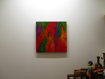 Red with Green #3 is a 24 x 24 inch contemporary abstract painting on museum stretched canvas. This color field painting by joseph piccillo was painted with the concept pf exploring the primary colors. Color as it affects our emotions. Red to me has a primal exciting feel especially when complimented with green. This painting has an explosion of color both exciting and comforting. #paintingsbyjosephpiccillo #contemporary abstract #modern #fine art