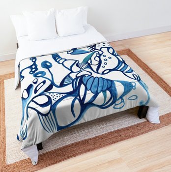 I opened my watercolors today. OMG! Inspiration hit me right away. I forgot what I wanted to paint. I just dived into these two colors. I loved everything about these two hues. This is watercolor on paper. Abstract art by Veera Zukova. The artist has used two watercolor shades in this artwork. She got inspiration from opening new colors. Veera has used a small brush, paper, Prussian blue, and Cobalt chrome turquoise colors. She made thin lines and had a wonderful lime painting of small details. It took her three hours to make this artwork. This painting is originally intended to be on the Redbubble page as a design. Veera often makes designed products and here is the original artwork. Since the artwork is on paper - it needs a frame. The image consists of subconscious details. The main part while painting - was enjoying the process of working with colors. The artwork is signed on the back by pencil carefully. Veera likes to paint a lot and she likes watercolor for its brightness and transparency. Feel free to ask any questions about this artwork. This picture is a scan from the original. The artwork represents femininity and fragileness. I recommend checking me out on Balthasart.