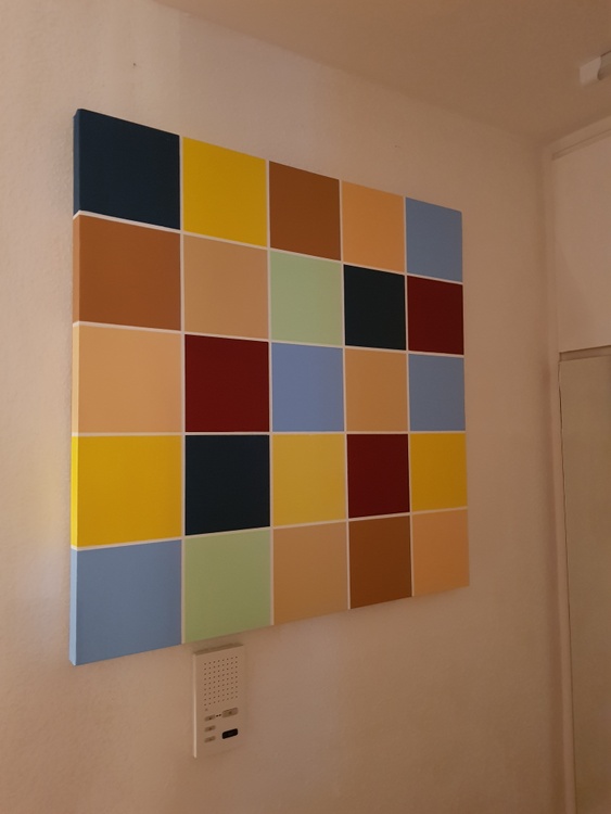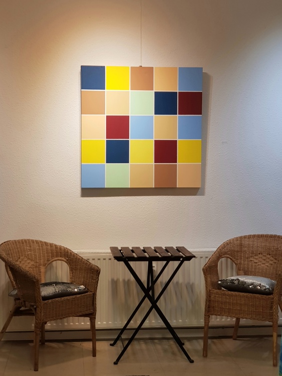 My work is inspired by Bauhaus - Josef Albers - Richard Paul Lohse - Johannes Itten - Gerhard Richter - Mondrian - Theo van Doesburg - Paul Klee I hope my viewers feel the interaction between figure, shape - and the amorphous room of random possibilities I chose hard edge painting as the best mode, to intermediate between the hard rule of a system of strong lines, hard limited areas - and the unlimited richdom and deepness of colors... Hard Edge, Hard Edge Painting, Geometric Geometrical Abstraction, Colorfield, Constructivism, Op Neo Geo, Bauhaus, Postpainterly Abstraction, Minimalism, Modern, Artusartist, Original Painting, Geometric Painting
