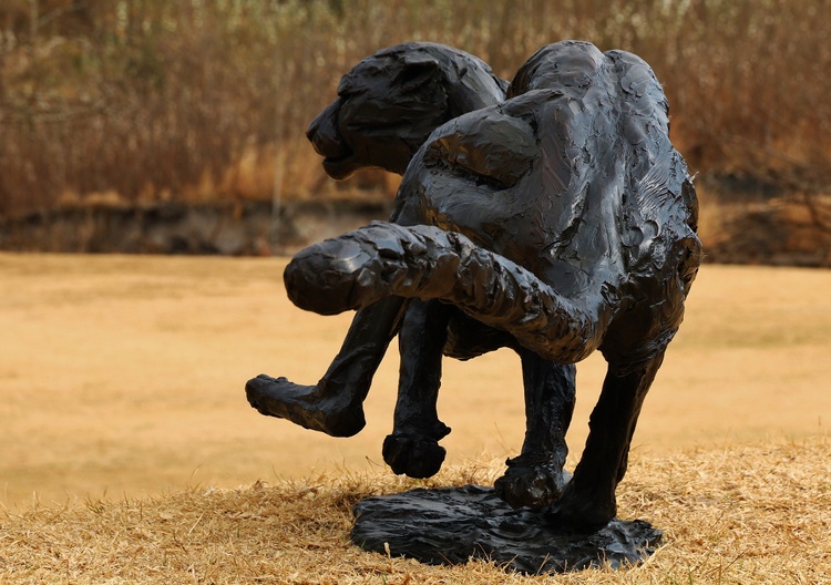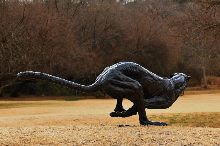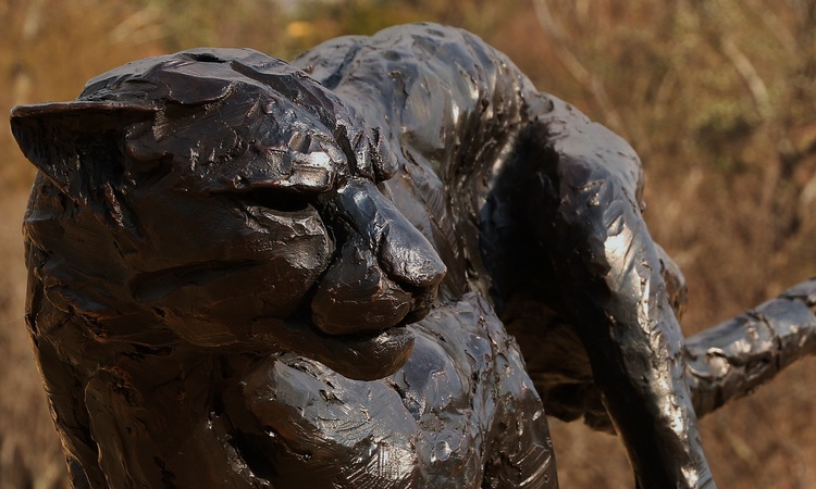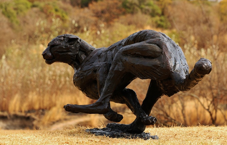 A lifesize bronze sculpture of a cheetah at full speed. This is a Ltd Ed of 10 only and it is 1.66m long x 60 cm high x 50cm deep.