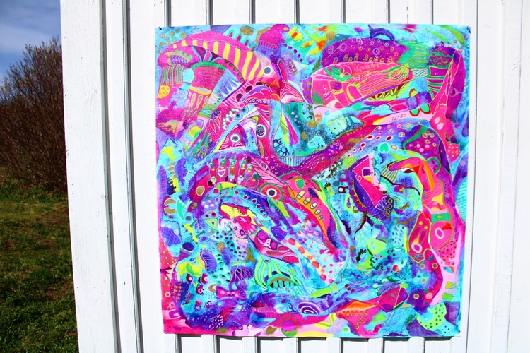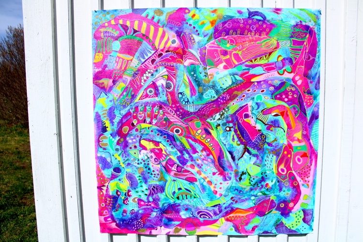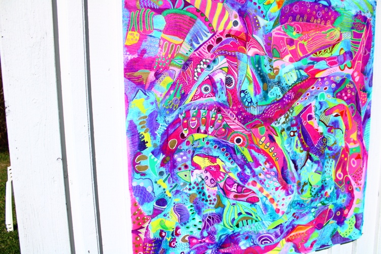 "Kaleidoscopic Fusion of Shapes and Colors" is a vibrant exploration of abstract forms and dynamic patterns. This piece was inspired by the interplay of chaos and harmony, using bold colors and intricate designs to evoke a sense of wonder and curiosity. Each element was thoughtfully crafted to draw the viewer into a playful yet complex visual journey. The use of markers and ink allowed for precise detailing and a rich palette, resulting in a piece that is both lively and captivating. What stories or emotions does this artwork stir in you? Share your reflections and join the conversation!