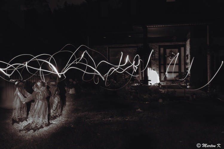 Creating an abstract fantasy scene of witches conjuring spirits. A play on time and light