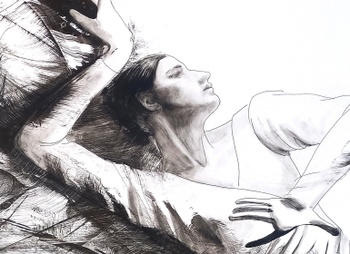 The energetic flamenco dance inspired the artist to create this graphic sheet. It has all the soul of the temperamental Spaniards. The guitarist masterfully plays his instrument, people around clap their hands, creating a clear metrical rhythm, the girl performs expressive choreographic movements, tapping castanets. Everything merges into one integral collective action, frantic like Spain itself. Flamenco is so bewitching that it cannot leave anyone indifferent. Some researchers of the history of this dance claim that its name comes from the word “flame,” which very clearly reflects the intensity of flamenco passion. Contrary to general misconceptions about the semantic meaning of flamenco, this dance is not at all about love and fun. Fiery expressive flamenco is a reflection of the suffering and pain of the people who endured the Reconquista. The famous Spanish poet Federico García Lorca described his feeling of dance "Gypsy sigiriyya begins with terrible cry, which divides the world into two ideal hemisphere, it is the cry of past generations, yearning for the vanished epochs, passionate recollection of love under the moon and other wind..."