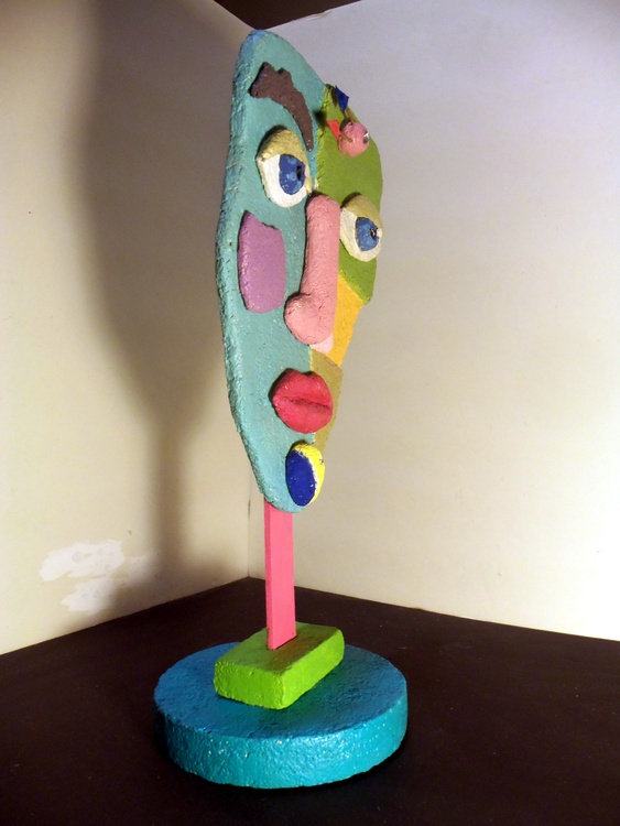 Evolution number 9 is finally finished. We had rain last night with more rain predicted today, so it was finished just in the nick of time. It measures 13.25 inches tall, 6.5 inches wide and the base is roughly 5 inches in diameter. It is composed of my custom compound, newsprint, floral foam, wood and incorporates a faux diamond---emphasis on faux. I used acrylics to paint it, per usual. This is Original Jones Art with 14 3D works under his belt so far in northwest Austin, Texas for 2025.