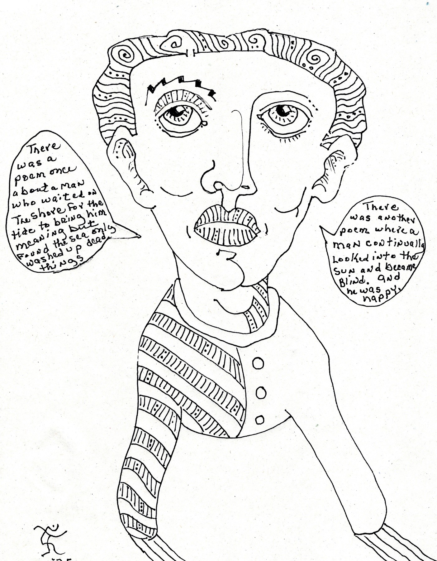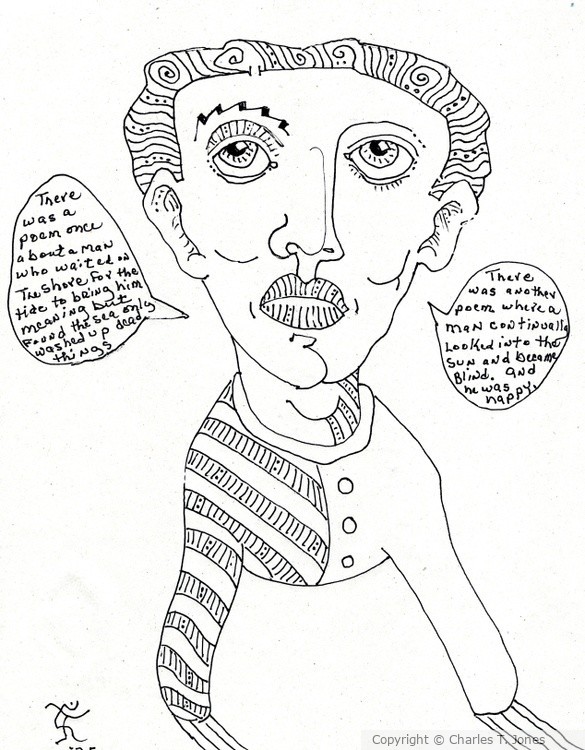 I drew the drawing yesterday and added the speech bubbles today. This is a 14 by 11 inches gel pen drawing on that infamous scribble pad I've used previously. If this isn't Original Jones Art, it could be Aboriginal Jones Art dug up in northwest Austin, Texas. Anything is possible in this best of all possible worlds.