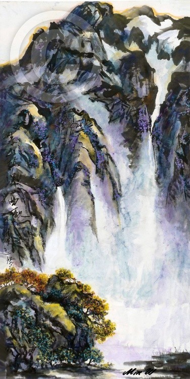 Painted in 2013, this signed original Chinese Brush (Watercolor)impression painting is 26" x 53”. It is painted on double-mounted rice paper. It is surrounded by a 2.5" silk border that is incorporated, This painting is not framed at the present time. The original painting, if purchased, includes a signed “statement of authenticity” with the Artist’s Biography. This statement can be used by the buyer for insurance, estate planning, personal asset protection, or resale of this painting, if desired. LRB Fine Art reserves all copyrights of original and/or reproductions. Reproductions on canvas can be purchased at: https://fineartamerica.com/profiles/min-w or www.artpal.com/ontap456