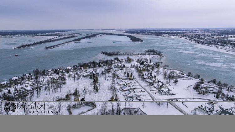 Northbound view of Detroit River. Bois Blanc Island, Ontario Canada