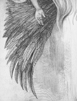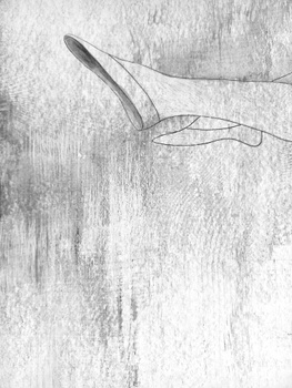 The graphic work captures a moment of losing support — a state in which downward movement becomes the only possible direction. The winged figure does not resist the fall; body and space enter a shared rhythm where former points of orientation lose their power. Here, wings do not guarantee salvation. They exist as a memory of ascent, as a trace of a former verticality that no longer sustains. The surrounding space is stripped of boundaries and reference points, turning into a bottomless environment where the distinction between height and depth dissolves. The work reflects the collapse of inner structures — expectations, plans, imagined futures — and explores a condition in which falling becomes a form of knowledge, and loss an inevitable stage of transition.