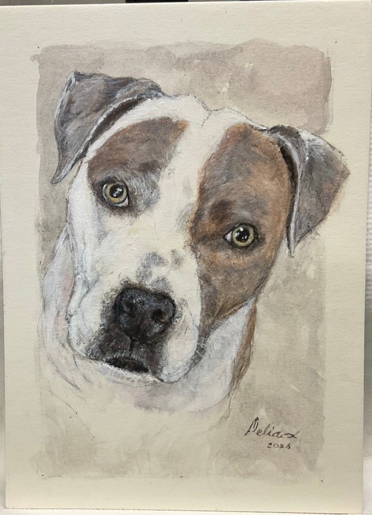Pitbull dog done in acrylic was a gift to a friend…