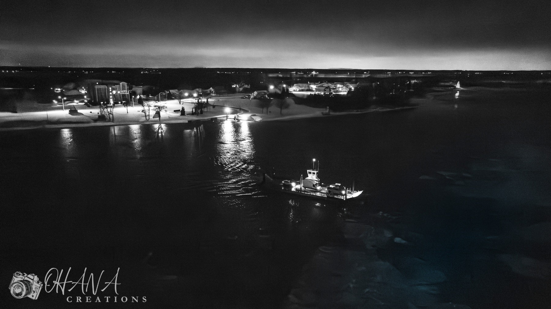Night ferry crossing of the Detroit River