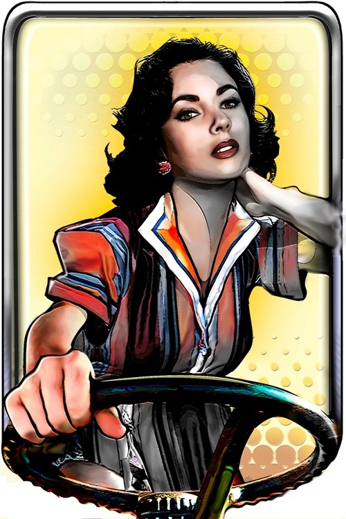 This is a young Elizabeth Taylor behind the wheel (by using an old Hollywood publicity photo of her as a figure model).