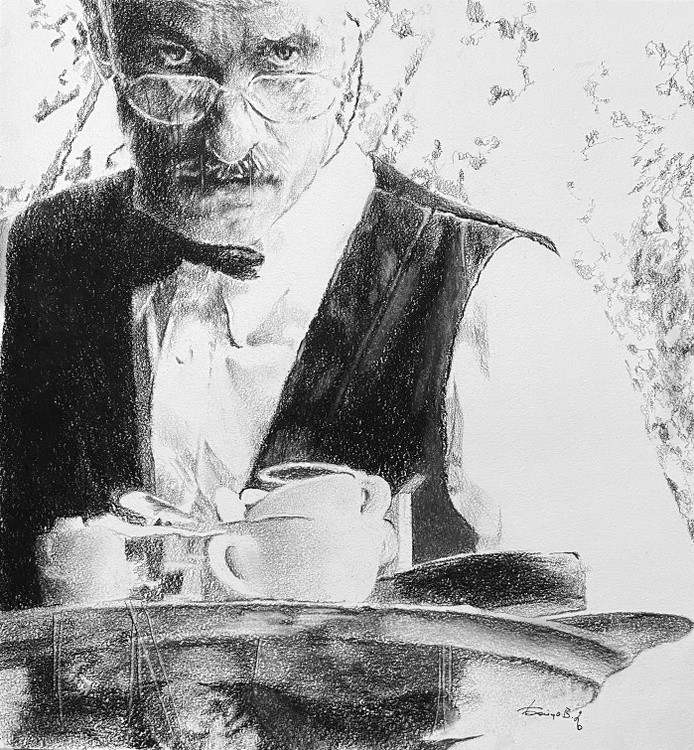 2026 © A. Boytsov 40 x 37 cm. Charcoal on paper. The work is signed by the author. The drawing has been processed with a graphic fixer. There is no additional structure.