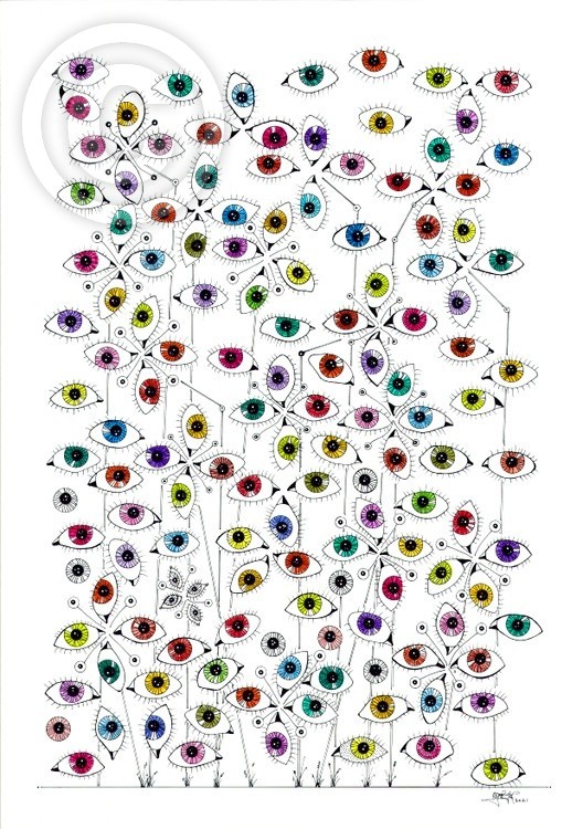 A piece of artwork full of eyes.