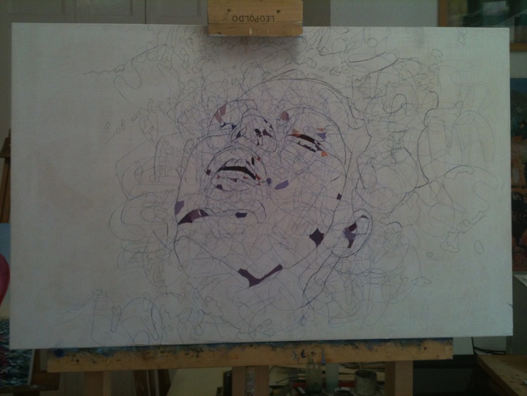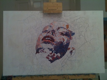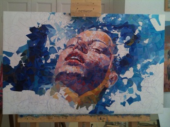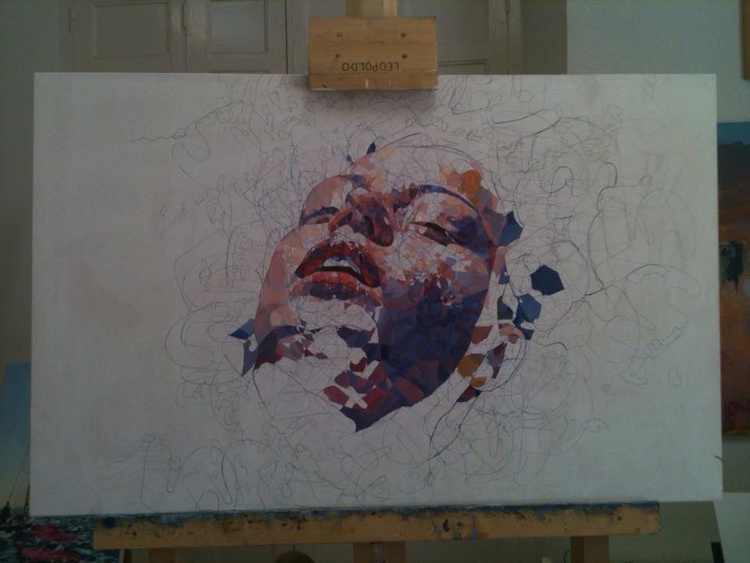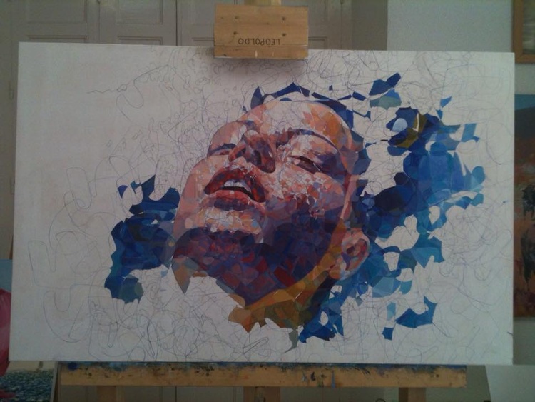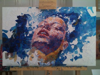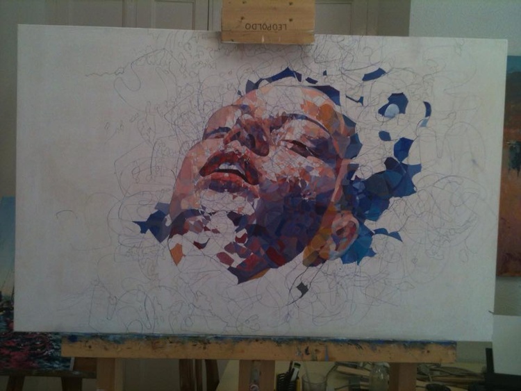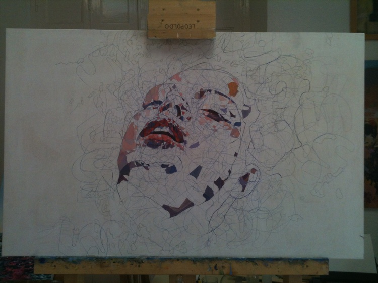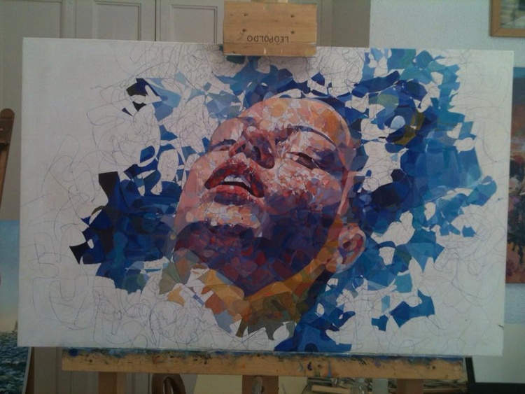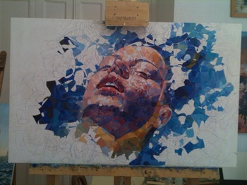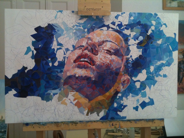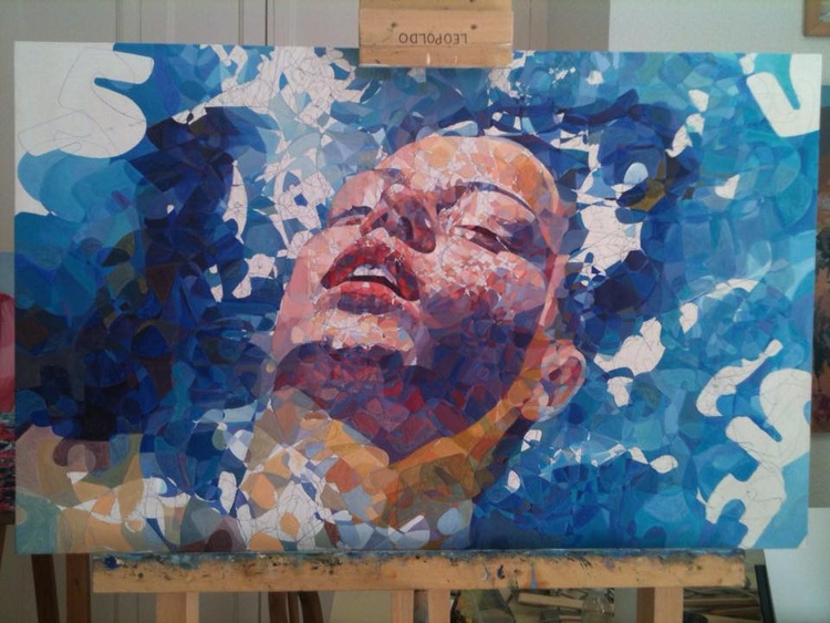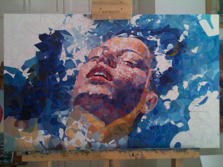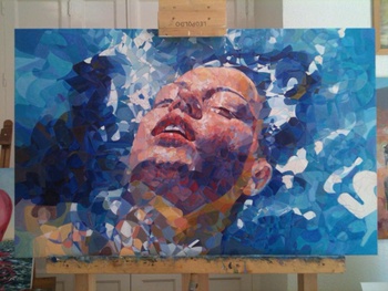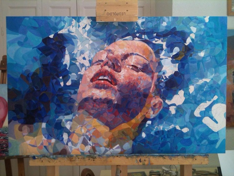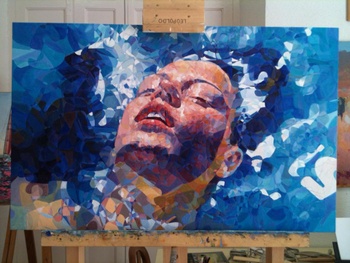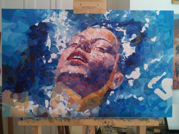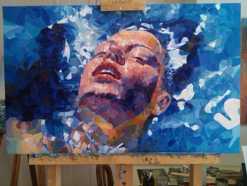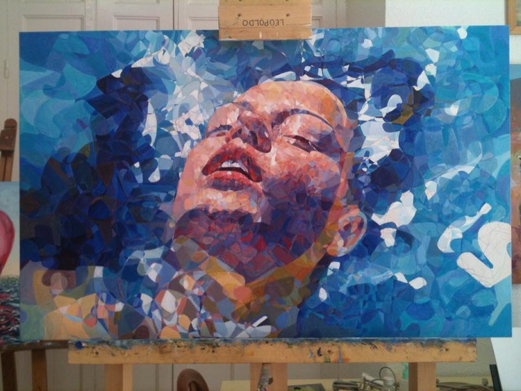 Representa la cabeza de una mujer flotando sobre el agua.