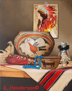 Redwing is 30 x 24, oil on canvas. This painting shows a mixture of old and newer icons of the American Indian. There is pottery, corn, beads, blanket, a kachina as well as a turn of the century piece of sheet music "Redwing". March Madness Sale! Spring Cleaning Sale! I have a sale on some of my paintings about once a decade. So this is it! https://www.khendersonartwork.com/collections/183932 I am discounting some of my older (and not so old) Western and American Indian themed paintings for one month only. Sale ends on March 31. All are original oil painting.