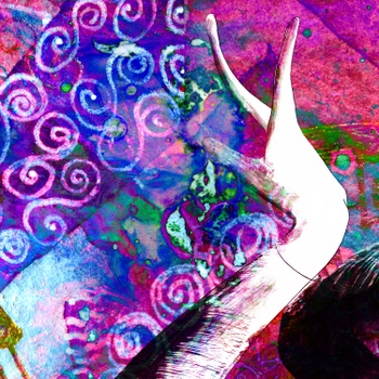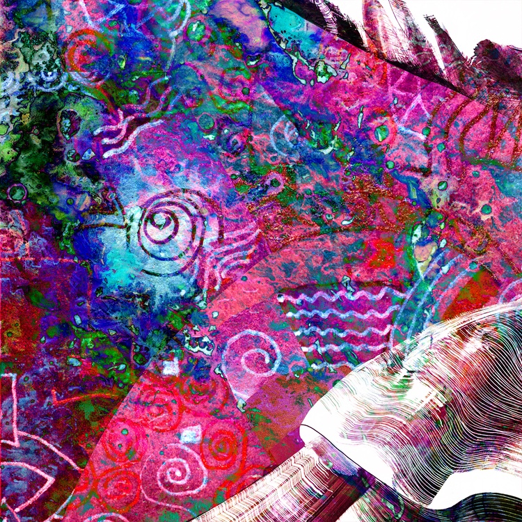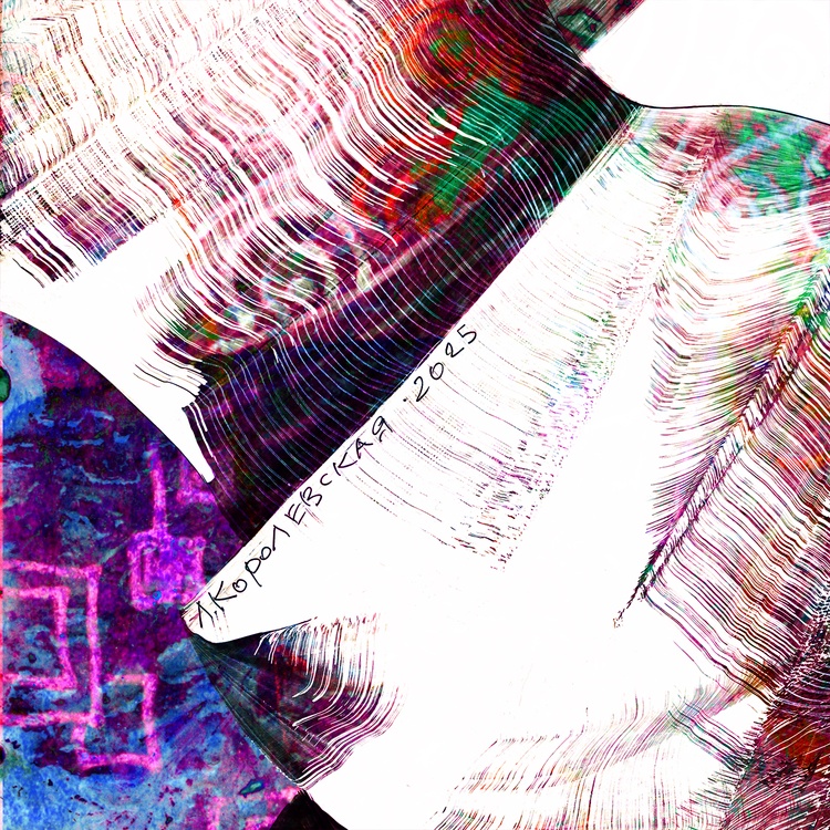 This collage combines oil painting "Carnival in Rio" (2019), abstract graphics made by watercolors and gel pens "Flickering space ?1" (2020) and figurative ink graphics "Spanish dance" (2023). Unlike the other two collages with this compositional motif, this one is not overloaded with particularly deep universal meanings. I dedicated it exclusively to admiring the beauty of artistic techniques: the superposition of dissimilar textures and a complex color scheme. To convey the temperament of Spanish flamenco, an equally emotionally charged visual expression is required. Therefore, such gaudiness is justified. The silhouette of the girl has no clear boundaries throughout. In some places, it shows through two backgrounds superimposed on each other. After all, the Spanish girl herself has become the dance that she performs. The space around her has also changed, it has been transformed into a cosmos flickering with lights. The whole flurry of emotions experienced by the dancer was visualized - both for the observer and for herself. Feel this festive, jubilant atmosphere together with the author and the heroine of this collage.