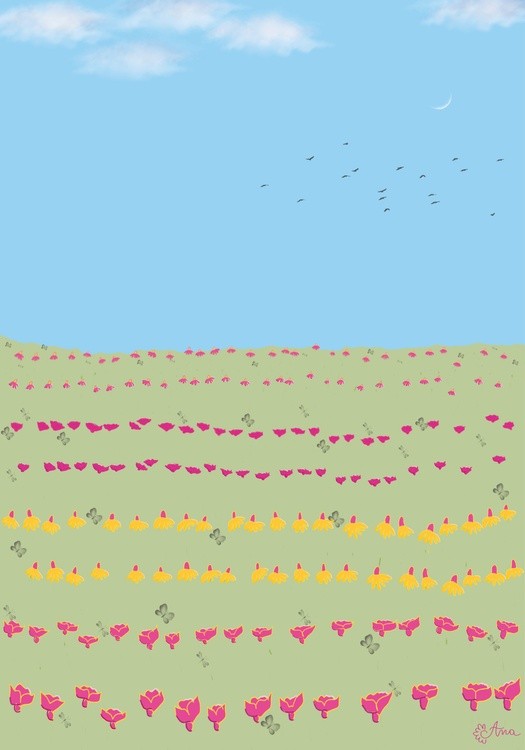 A simple illustration of nature, flowers and butterfly. I imagined hearing