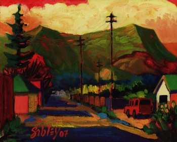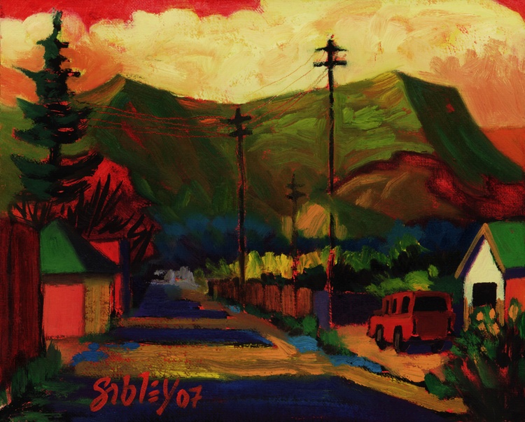 On a painting expedition to Alberta Canada, we visited the Badlands between Edmonton and Calgary. An area rich with fossils of dinosaur bones. I painted this image en plein air at that time. This is a digital reproduction. I was able to correct some of the areas that were too dark and make it more inviting.