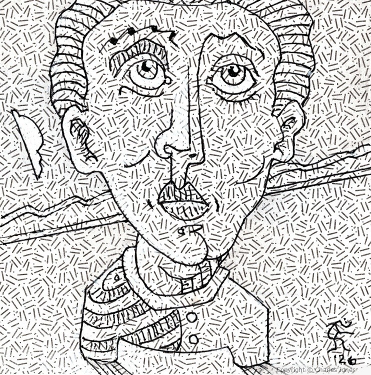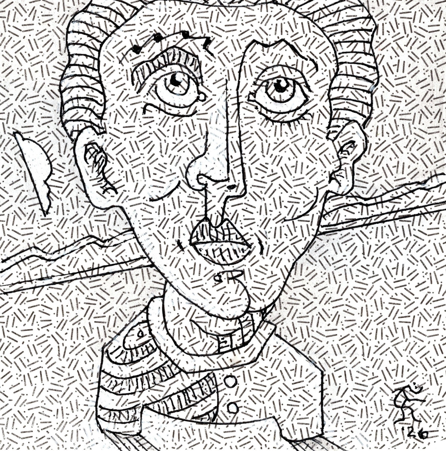 Any similarity between this and a 90's movie without the 'for' is purely coincidental. This is another envelope drawing drawn with gel ink and gray Crayola measuring roughly 4 by 4 inches. Original Jones Art playing it small and tight in northwest Austin, Texas.