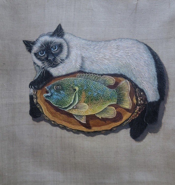 Trompe L'oeil painting on unique canvas. This old handmade canvas I have brought from Ukraine in summer 2025. That is why for me was important to save his original texture visible, so I covered canvas with transparent primer. That is why for me was important to save his original texture visible, so I covered canvas with transparent primer. And also I decided that painting will be in Trompe L'oeil style.