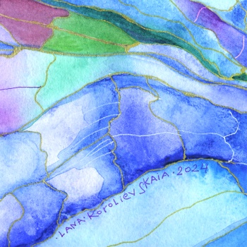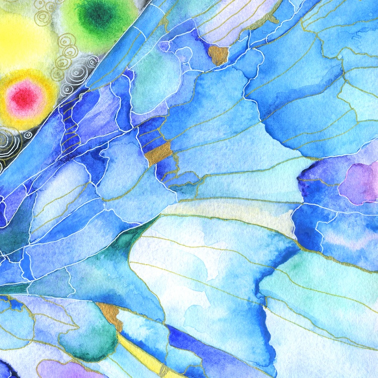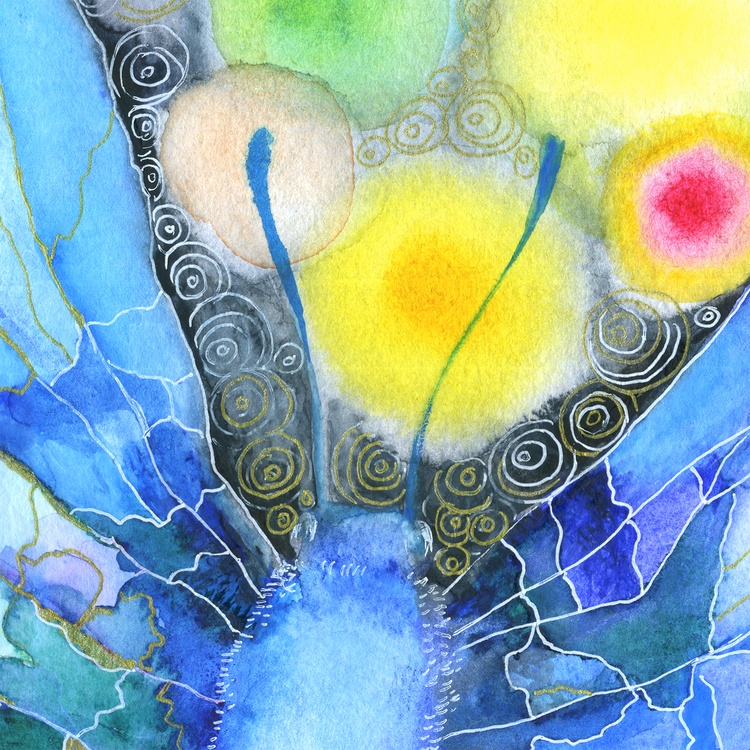 In this watercolor I tried to depict not just a beautiful butterfly in flight, but the flight itself as a special state of consciousness and being. The butterfly's wings are open. They are like the morning sky - light blue, almost transparent, with thin veins, like the breath of dawn. Their cold heavenly lightness bursts into the background space, representing a multitude of multi-colored lights that can be perceived both as cosmic galaxies, and as luminous energy bodies of living beings, pulsating at different frequencies. Blue wings, according to legends, symbolize the sky of the soul - freedom, purity and fragility. In Eastern parables, they often represent the lightness of being, which does not hold for a single moment. In ancient philosophy, the soul, inspired by reason, strives upward - where there is neither fear nor time. This butterfly is the image of someone who has crossed the border between the earthly and the heavenly, was able to evolve by transforming his inner essence.