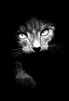This piece works because although little is seen of the cat (Rufus) it brings you to picture the whole cat emerging from the shadows.