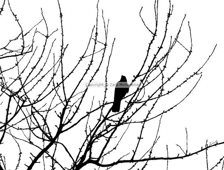 A silhouette scene of a crow sitting among the tree branches on Hampstead Heath, London This is a hand-sketched digital drawing, which will be professionally printed using archival inks onto a beautifully textured A4 310gsm sheet of German Etching Paper.