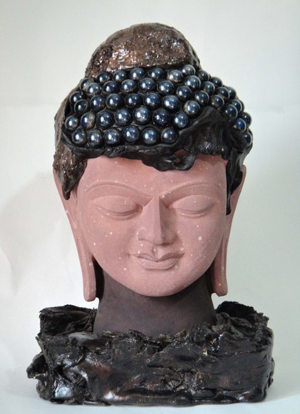 Budha, Sand Stone, Copper and Glass