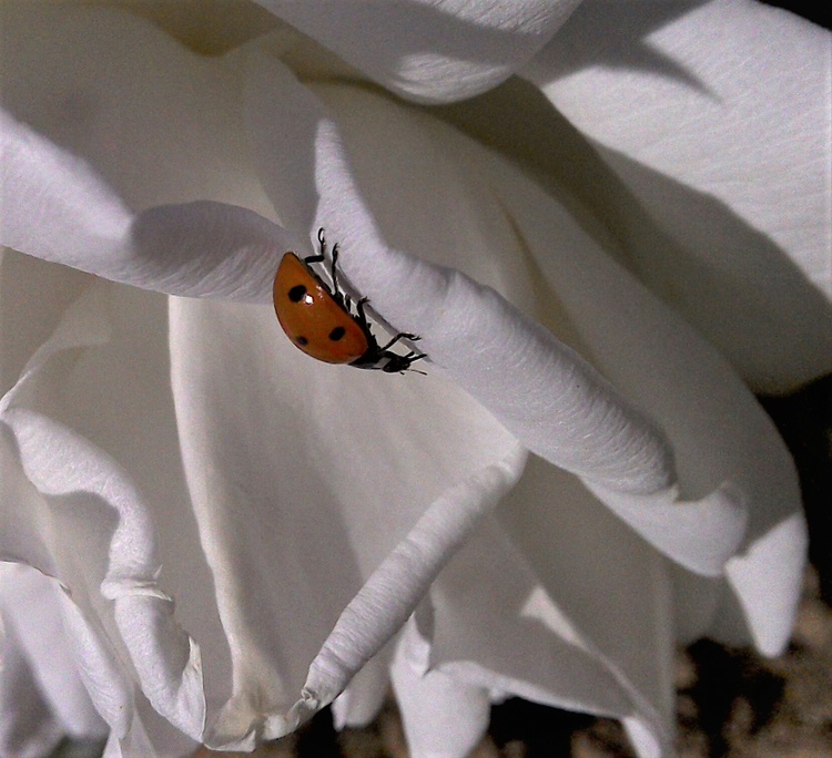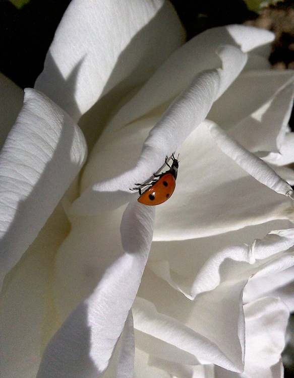 LADYBUG ON A WHITE ROSE ...