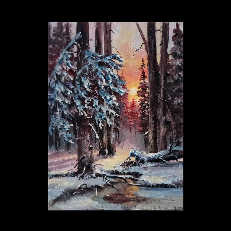Winter Wood aceo miniature oil painting