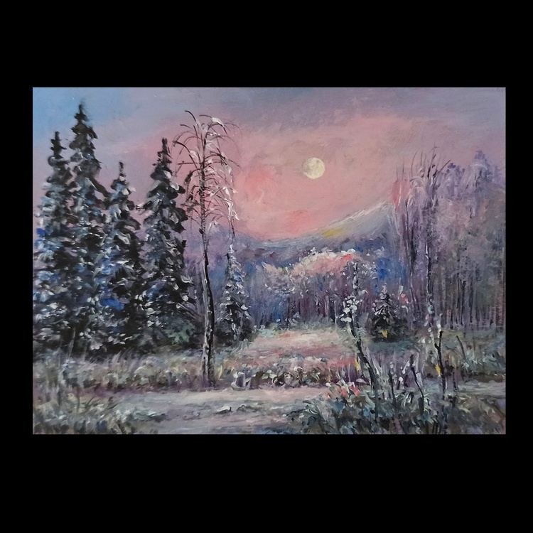 winter original oil painting . Aceo size 3.5x2.5 inch . For sale