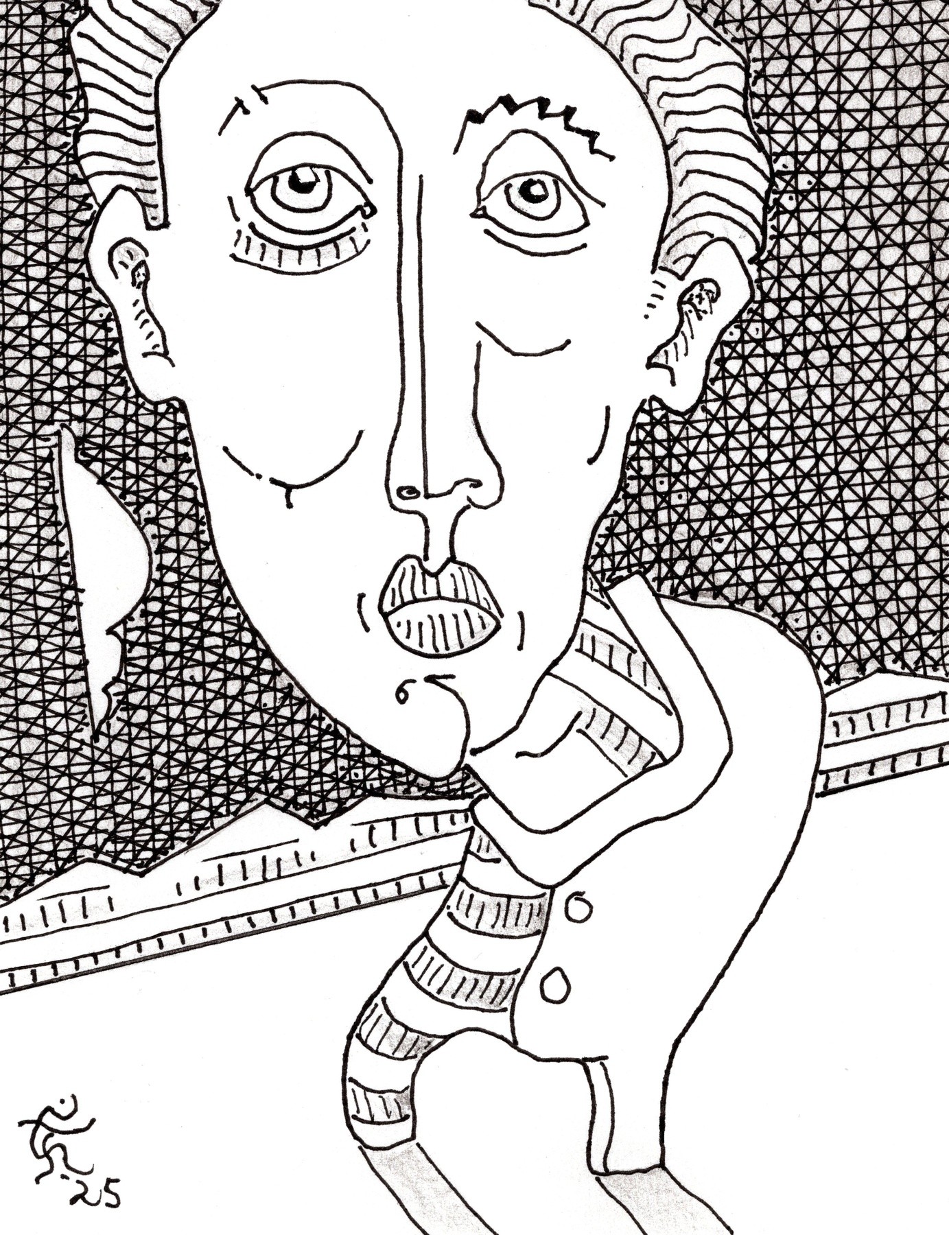 Happy is as happy does. Or was that something else? This guy is so filled with the expectation of joy, he's liable to implode at any second. This is a 6 by 4.5 inches gel pen with charcoal pencil on medium bond acid-free paper. Original Jones Art is ready for his party hat in northwest Austin, Texas.