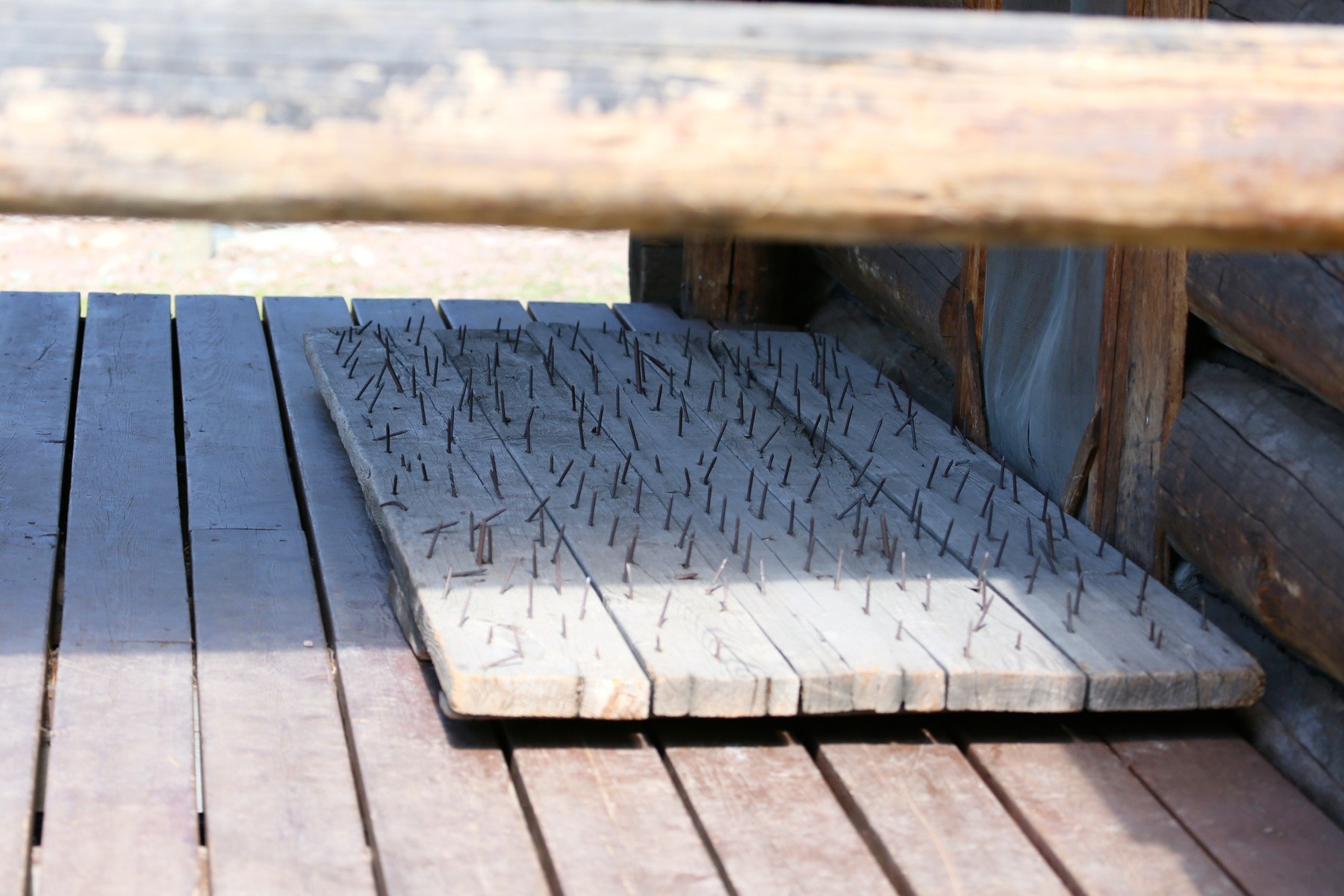 it is to keep Grizzly Bears out. The will stand on their rear legs and use all their weight (over a thousand pounds) and their force to break the door open ...they want any food or whatever they find
