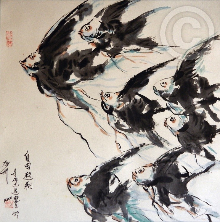 Painted in 2012, this signed original Chinese Brush (Watercolor) waterscape impression painting is 26" x 26”. It is painted on double-layer rice paper. Incorporated is a 2.5" silk border surrounding the actual painting. This painting is not framed. If purchased, the painting can be shipped in a mail tube for protection. The original painting, if purchased, includes a signed “statement of authenticity” with the Artist’s Biography. This statement can be used by the buyer for insurance, estate planning, personal assets or resale of this painting if desired. LRB Fine Art reserves all copyrights of original and/or reproductions. Reproductions on canvas can be purchased at: https://fineartamerica.com/profiles/min-w or www.artpal.com/ontap456